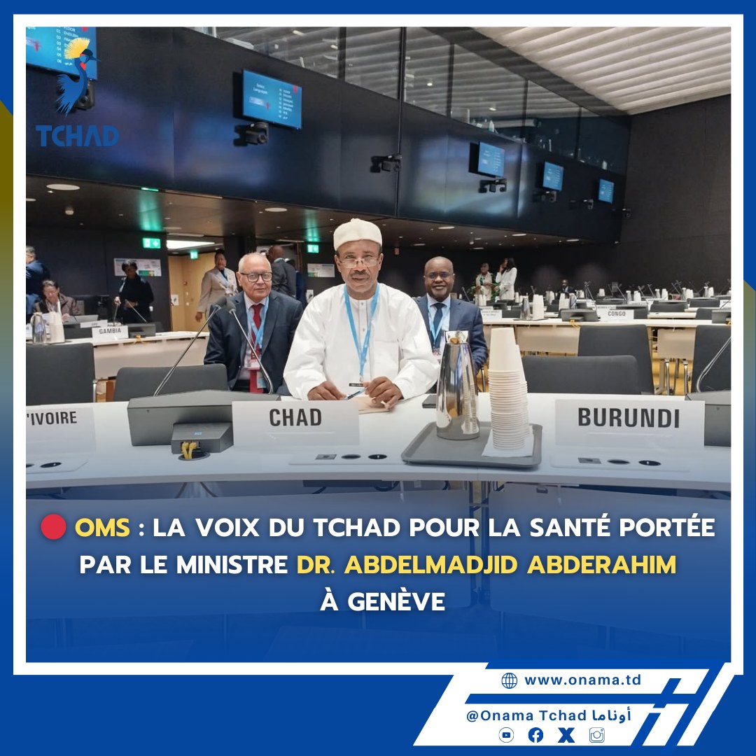 La délégation tchadienne comprenant les Conseillers – santé du Chef de I’État et du Premier Ministre, de 1’Ambassadeur Représentant permanent du Tchad à Genève et des hauts cadres du Ministère de la Santé participera à la Soixante-huitième Assemblée mondiale de la Santé,I’organe décisionnel suprême de I’OMS, qui s’ouvre ce lundi 19 mai 2025 à Genève.